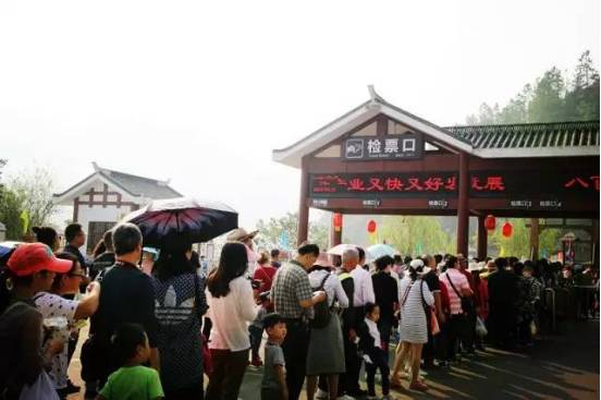 湖北长阳清江画廊景区排队买票的游客