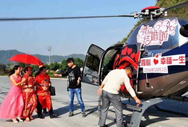 10月1日,十堰一小伙举办直升机空中婚礼