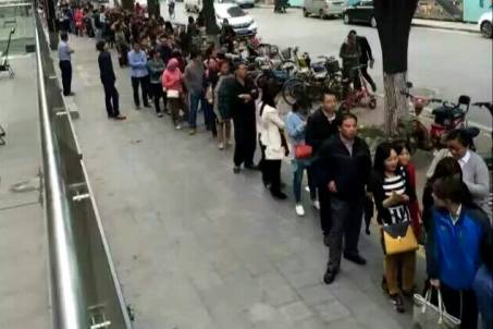 武汉一楼盘前排队购房的人群