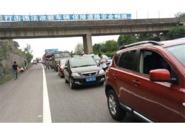 10月1日,G65包茂高速水江至武隆段拥堵严重,游客下车散步休息