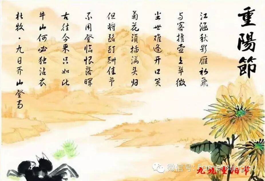 九九重阳,因为与“久久”同音,九在数字中又是最大数,有长久长寿的含意,况且秋季也是一年收获的黄金季节,重阳佳节,寓意深远,人们对此节历来有着特殊的感情。