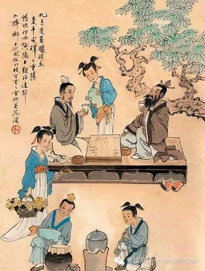 晋代文人陶渊明在《九日闲居》诗序文中说:“余闲居,爱重九之名。秋菊盈园,而持醪靡由,空服九华,寄怀于言”。这里同时提到菊花和酒。大概在魏晋时期,重阳日已有了饮酒、赏菊的做法。到了唐代重阳被正式定为民间的节日。