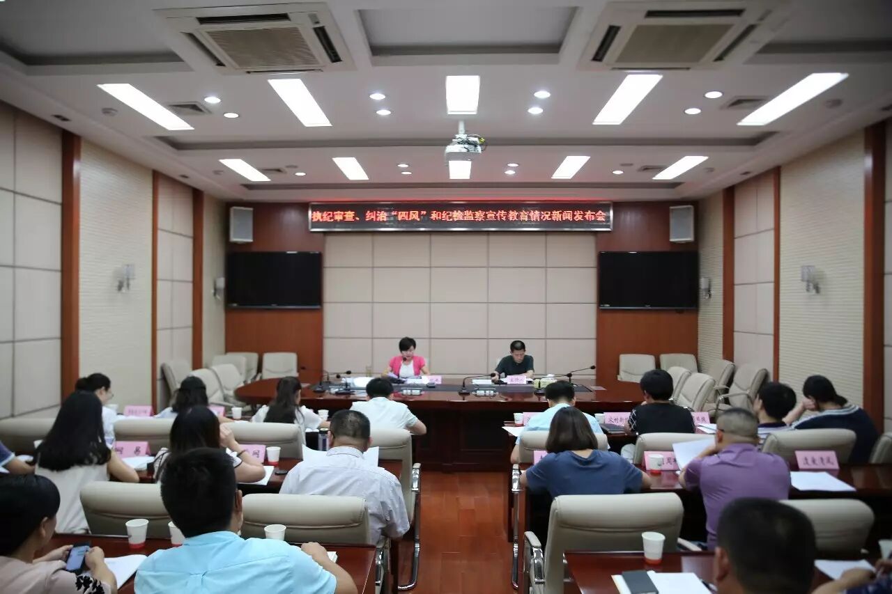 7月20日下午,市纪委监察局召开2017年上半年全市执纪审查和纠“四风”工作新闻发布会。市纪委常委、新闻发言人胡晓燕通报了2017年上半年全市执纪审查和纠“四风”工作情况,介绍了第十八个党风廉政建设宣传教育月有关情况。市政府新闻办主任童和平主持会议。