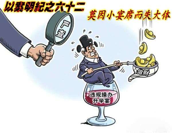 又到高考升学季。孩子考上理想大学本是件喜事,普通群众宴请亲朋好友庆贺一下无可厚非,但是部分人把喜庆的“升学宴”办成了人情宴、炫富宴甚至腐败宴,既加重了参加者的负担,又不利于形成良好的社会风气。对此,各级纪检监察机关严令党员干部禁止违规操办“升学宴”。但是少数党员干部却罔顾禁令,触碰纪律“红线”,抱着侥幸心理顶风操办“升学宴”。一如本案中的李某,作为党员领导干部,不仅违规操办“升学宴”,而且收受朋友、同事和下属的礼金,最终受到纪律的严惩,因小宴席而失大体,追悔莫及。究其根源,“升学宴”滋生的是“四风”问题,违规操办“升学宴”折射出少数党员干部党性原则不强,纪律观念淡漠。有的党员干部为规避查处,只收礼不办酒,或化整为零,绞尽脑汁躲进“青纱帐”、千方百计穿上“隐身衣”,均是掩耳盗铃之举,掩盖不了借机敛财的实质,也必将被打回“原形”。本案告诫全市广大党员干部,“不矜细行,终累大德”,要从小事小节做起,带头坚守正道,弘扬正气,自觉做守纪律讲规矩的模范,敢于拉下情面,对“升学宴”坚决说“不”!(市纪委案件审理室 罗田县纪委案件审理室)
