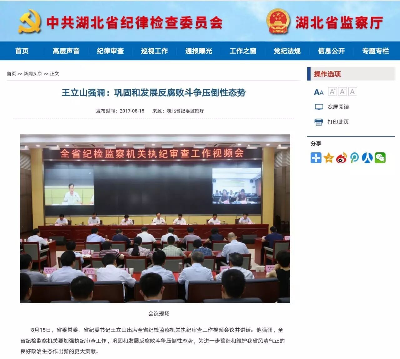 编者按:8月15日,省委常委、省纪委书记王立山出席全省纪检监察机关执纪审查工作视频会议并讲话。他强调,全省纪检监察机关要加强执纪审查工作,巩固和发展反腐败斗争压倒性态势,为进一步营造和维护我省风清气正的良好政治生态作出新的更大贡献。现将湖北省纪委监察厅网站新闻稿转发如下,供大家学习。