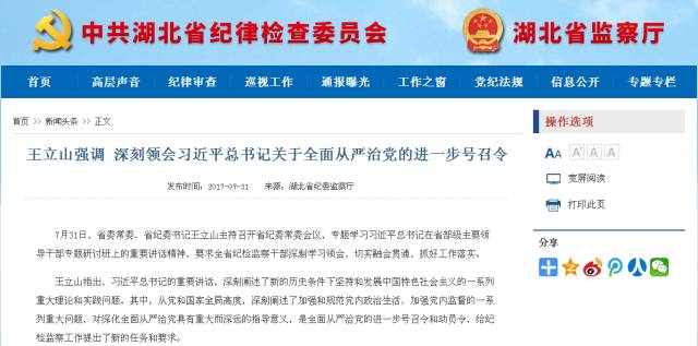 编者按:10月24日,省纪委监察厅网站刊登了王立山代表参加湖北代表团分组讨论中央纪委向十九大所作报告的发言,现转载如下,敬请关注。