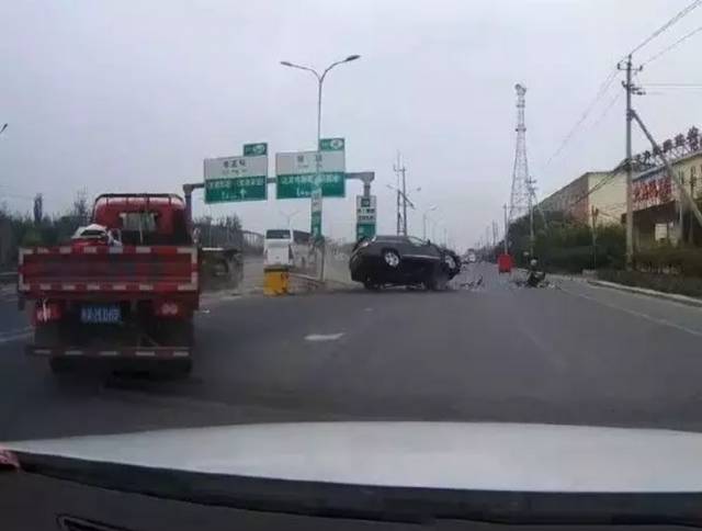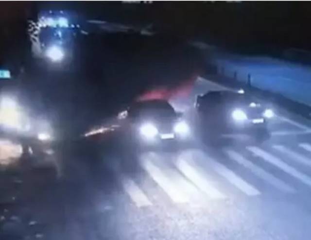 第三辆肇事的大卡车更别说了,看来也想冲闯红灯,根本没刹车的意图。被实道并线的小车晃了一下。