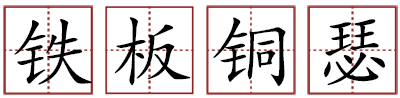 北宋时期,苏轼带他随从外出郊游,他观赏山崖的金鸡菊,随从在一旁高唱苏轼的歌词。苏轼问他们自己与柳永的词有什么不同。随从说:柳郎中的词只可借17岁的女孩子执红牙拍板唱“杨柳外晓风残月”,您的歌词得请关西大汉持铁板唱“大江东去”。后用来形容豪迈激越的文章风格。