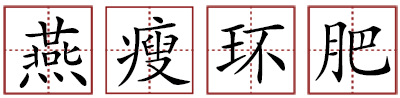 燕:汉成帝皇后赵飞燕;环:唐玄宗贵妃杨玉环。形容女子体态不同,各有各好看地方。 也借喻艺术作品风格不同,而各有所长。