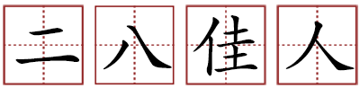 指16岁的美女。 出自苏轼《李铃辖座上分题戴花》诗:“二八佳人细马驮,十千美酒渭城歌。”