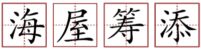苏轼《东坡志林·三老语》:“尝有三老人相遇,或问之年……一人曰:‘海水变桑田时,吾辄下一筹,尔(迩)来吾筹已满十间屋。’” 这本是寓言,讲三位老人竞相夸耀自己的寿命之高。后用“海屋筹添”指增年益寿,常用作祝寿之词。