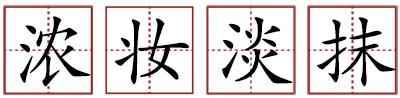 出自苏轼的《饮湖上初晴后雨》:“欲把西湖比西子,淡妆浓抹总相宜。” 指淡雅和浓艳两种不同的妆。也形容园林景观呈现的繁丽与恬淡的两种景象。