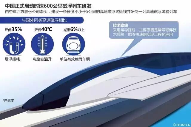 时速600公里到底是什么概念呢?目前,我国民航客机的平均时速大概是900公里,也就是说启动的高速磁浮,能达到飞机时速的三分之二。本次研发项目前期实验阶段将建设一条长度不小于5公里的高速磁浮试验线,并研制一列高速磁浮试验列车。