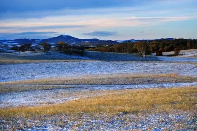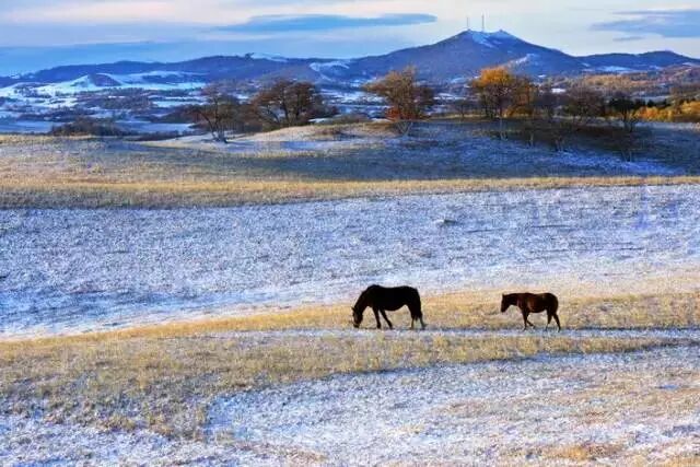 等到初雪飘下,薄雪覆盖了这片昔日皇家猎,所有的金黄都被白茫茫笼罩,而放牧的牛羊似乎不怕寒冷,依旧在雪中啃着草,这般景致,着实让人流连忘返。