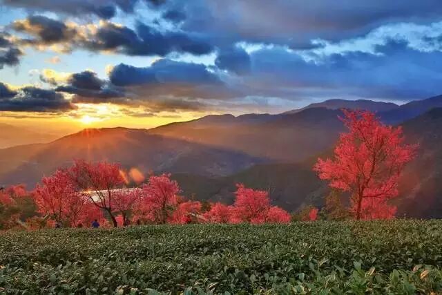 墨绿色的乌龙茶,娇艳的樱花丛,清新的空气,蔚蓝的天空,飘过的纯粹的白云,怎能不令人神往!