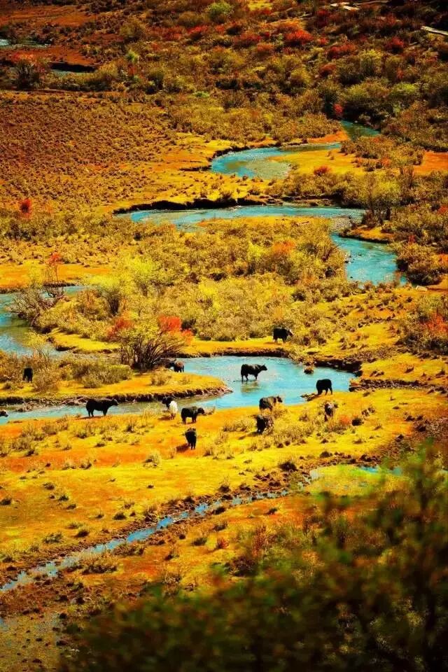 脑海里尽是色彩斑斓的画面,绿色蓝色,是数不清的海子;黄色红色,是十月热闹的彩林,银白清凉,是威仪万千的蓝冰雪峰……