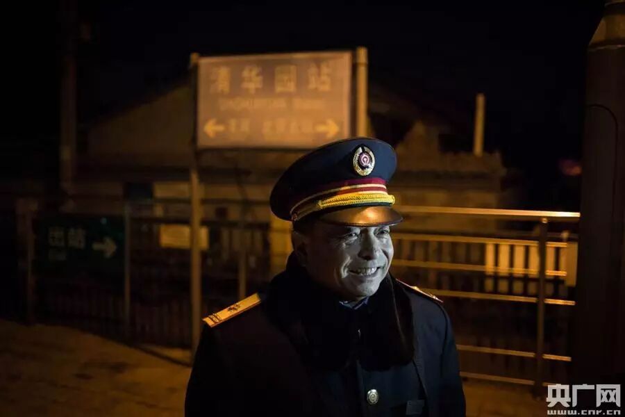 22:50,李凤强站长在迎接清华园站最后一班客运列车的到来。