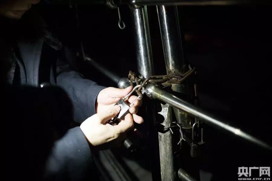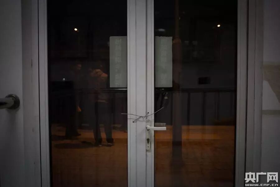 10月31日晚,车站关闭的前一夜,车站的工作人员正在为车站的门上锁。