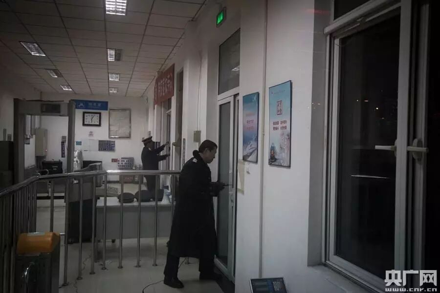即使是最后一班岗,李凤强站长依旧一丝不苟地执行列车接送站程序,亲自到站台巡查。