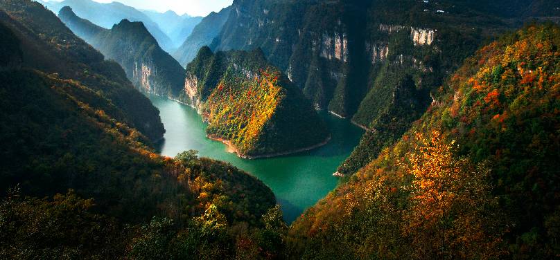 自宜昌溯江而上,便进入长江西陵画廊。两岸重峦叠嶂,烟笼雾锁,瀑飞泉涌,峡谷幽幽,似一幅壮丽的山水画卷。