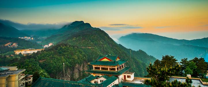 九宫山位于湖北省通山县城东南。绵亘百里,主峰海拔 1,543 米,境内千峰争翠,万壑竟幽,峰、岭、岩、台、洞、泉、池等奇丽景物引人入胜。是湖北省六个国家级风景名胜区之一。