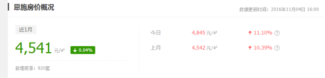恩施10月平均均价:4542元/㎡