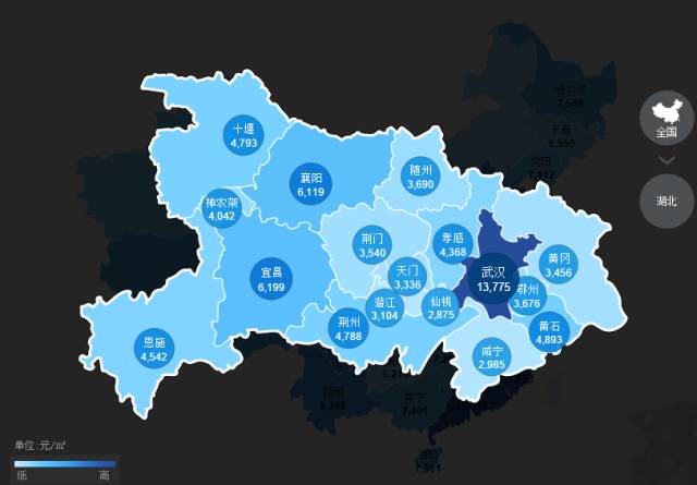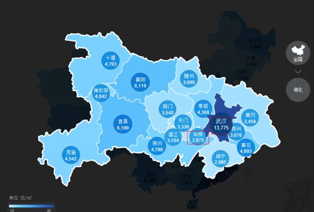 再来看看湖北各地区的房价