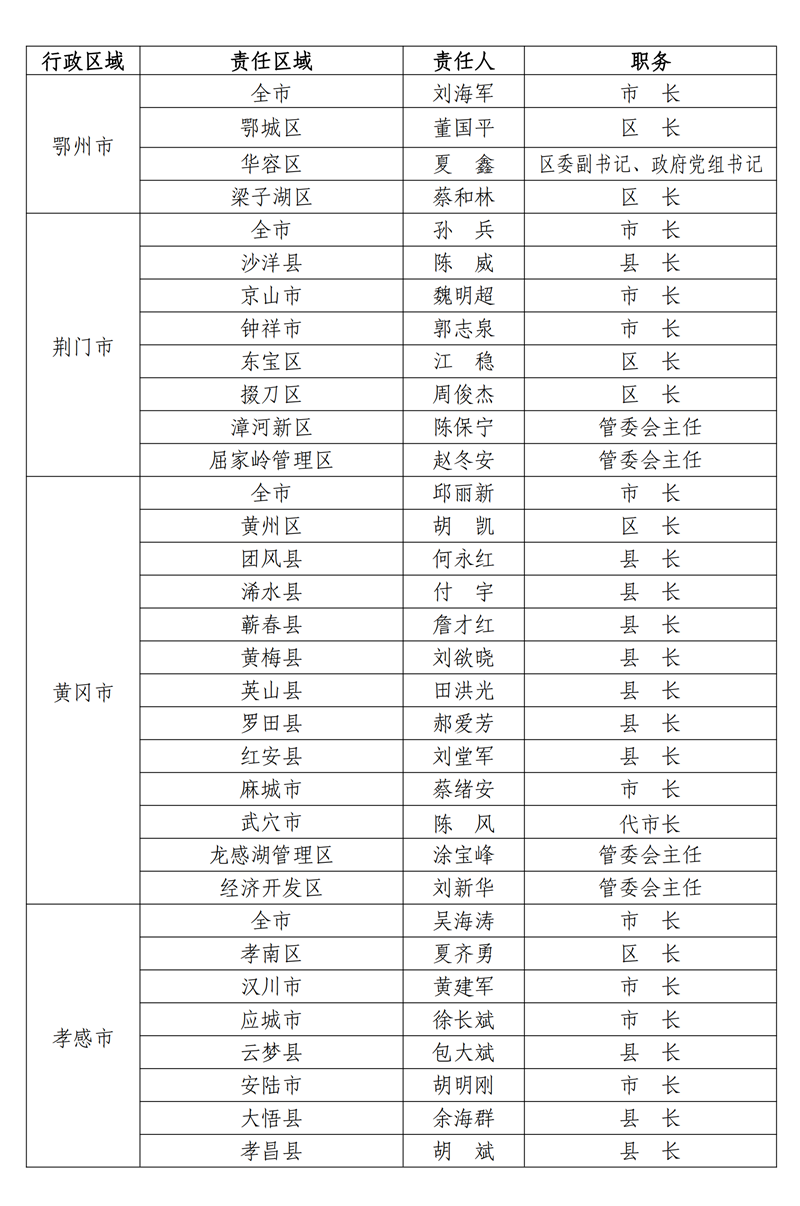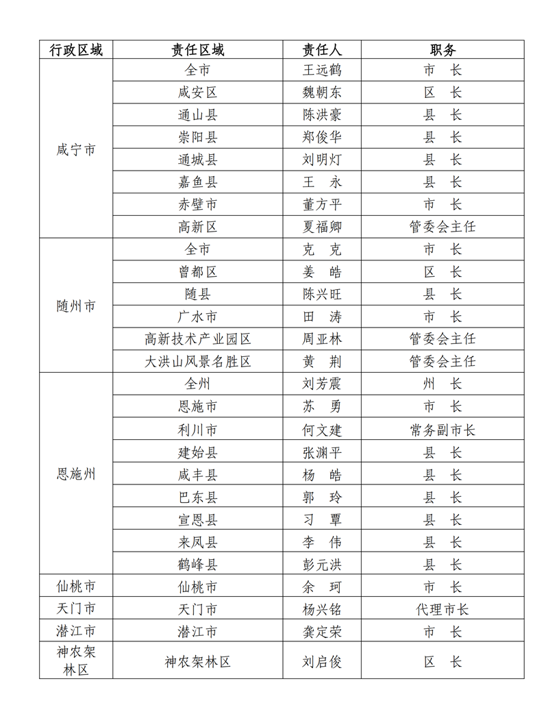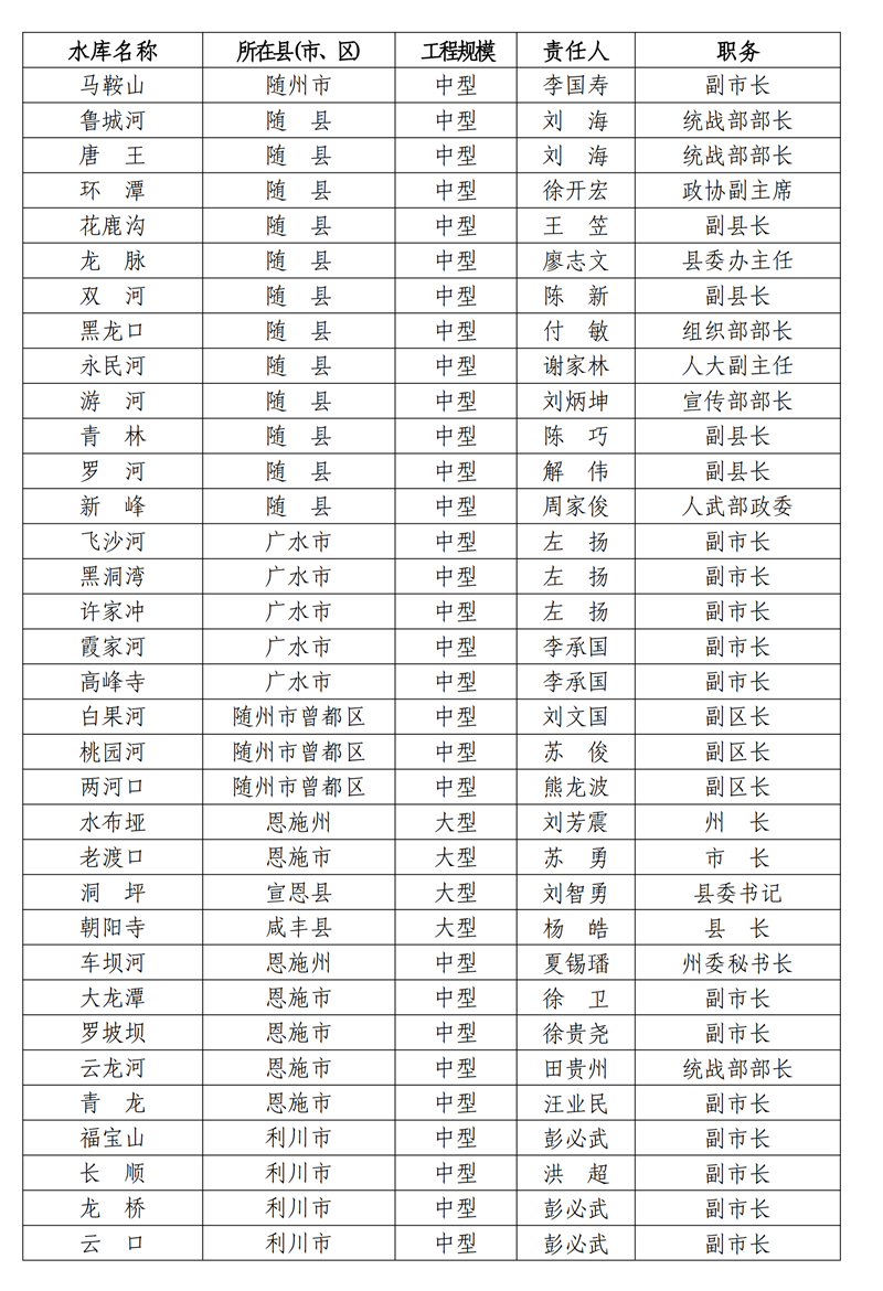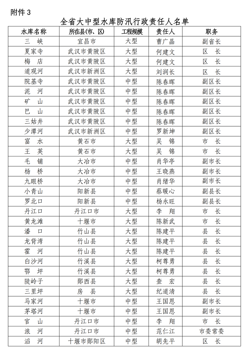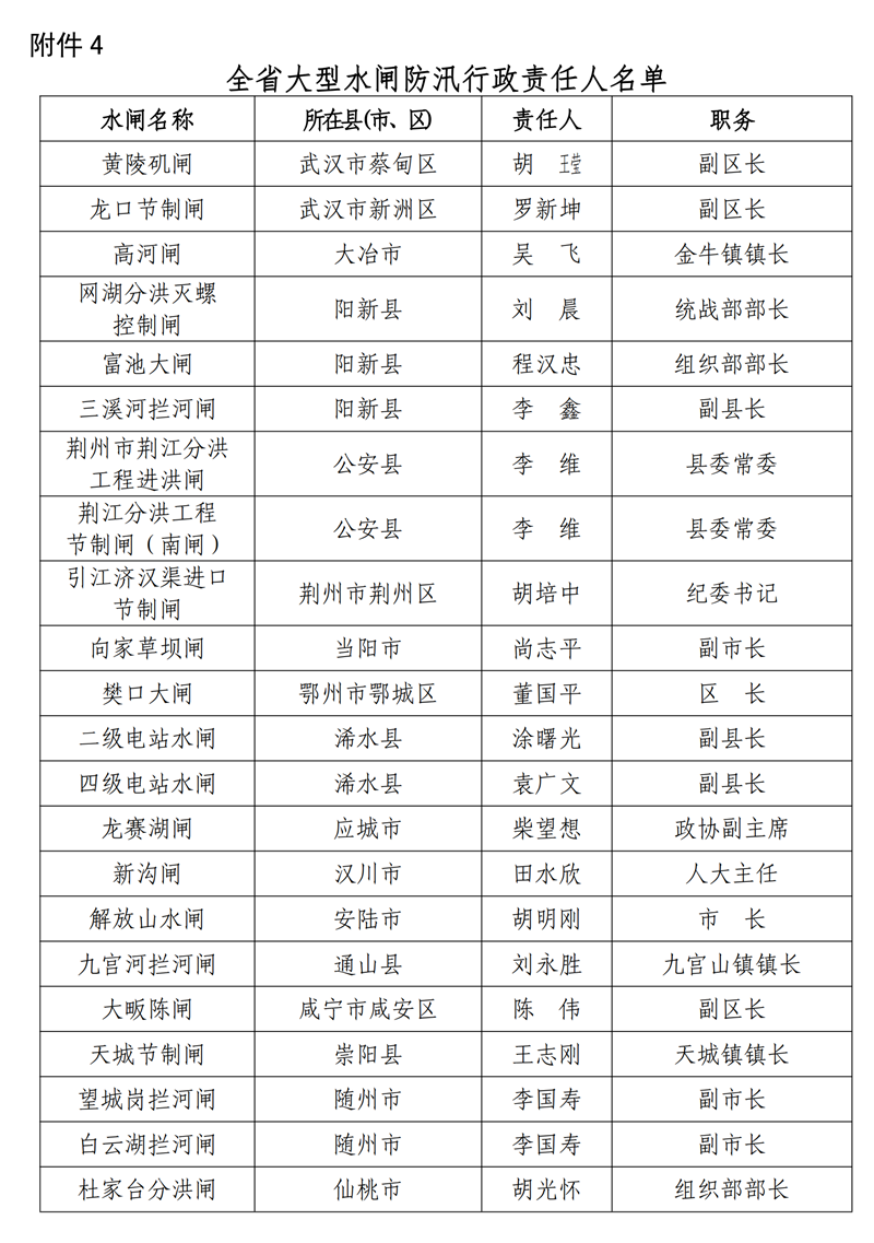 湖北省防汛抗旱指挥部关于防汛抗旱行政责任人的通报