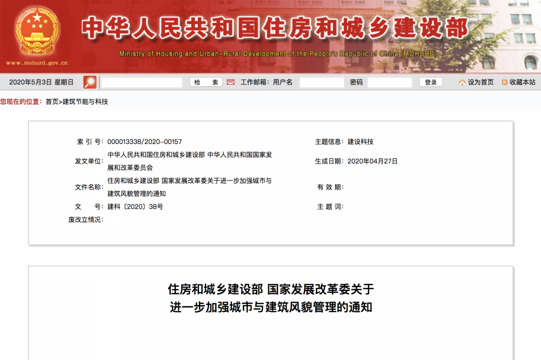 近日,住房和城乡建设部和国家发展改革委发布《关于进一步加强城市与建筑风貌管理的通知》(简称《通知》),《通知》指出,为贯彻落实“适用、经济、绿色、美观”新时期建筑方针,治理“贪大、媚洋、求怪”等建筑乱象,进一步加强城市与建筑风貌管理,制定三项内容。
