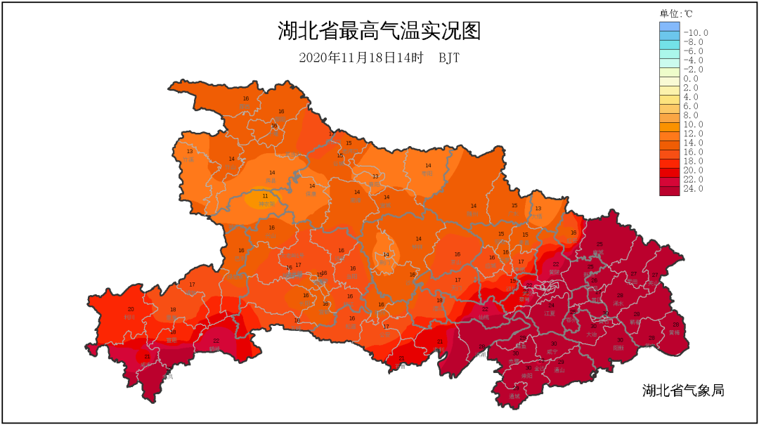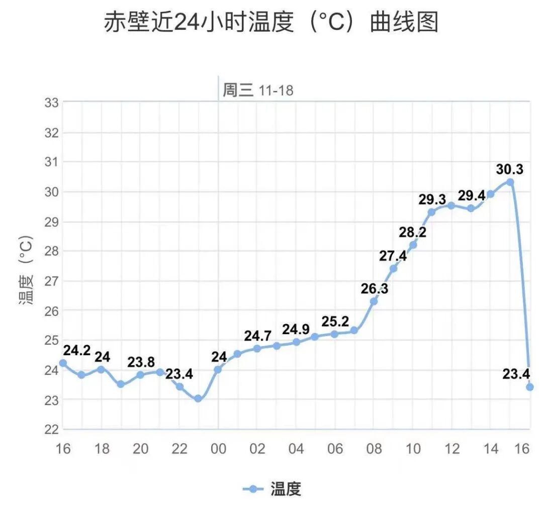 据统计,大冶、崇阳、黄石、阳新、武穴、蕲春等县市今天的气温已经打破1951年以来的11月中旬最高气温纪录。