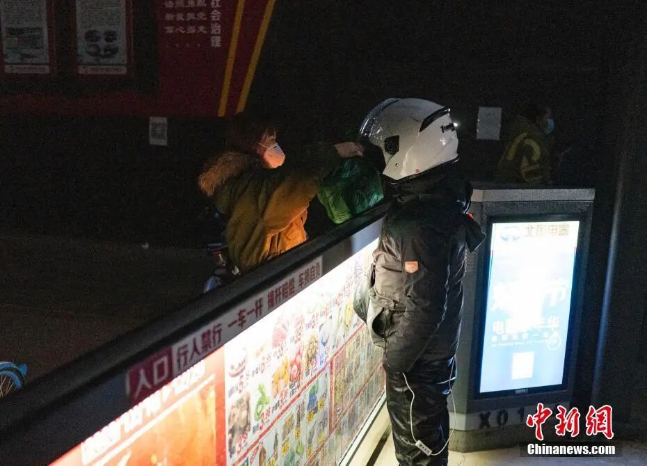 1月9日,河北省石家庄市的一名快递送货员为一处小区的居民派送生活必需品。中新社记者 侯宇 摄