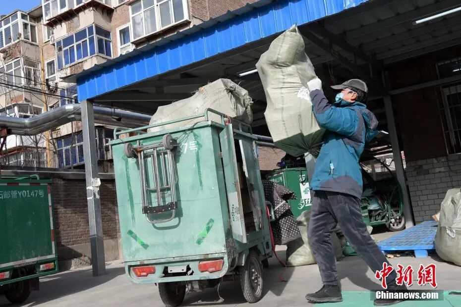 1月10日上午,石家庄市快递服务恢复运营,在中国邮政集团有限公司石家庄市分公司翟营投递部,快递员正在将打包好的快递装车,进行派送服务。 中新社记者 陈昊 摄