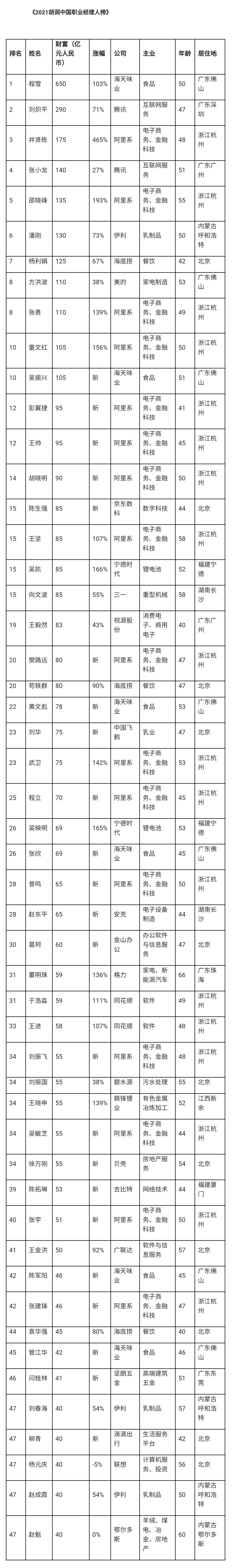 1月19日,胡润研究院发布《2021胡润中国职业经理人榜》,列出了前50名中国最成功的职业经理人。来看看谁是中国最成功的“打工人”。