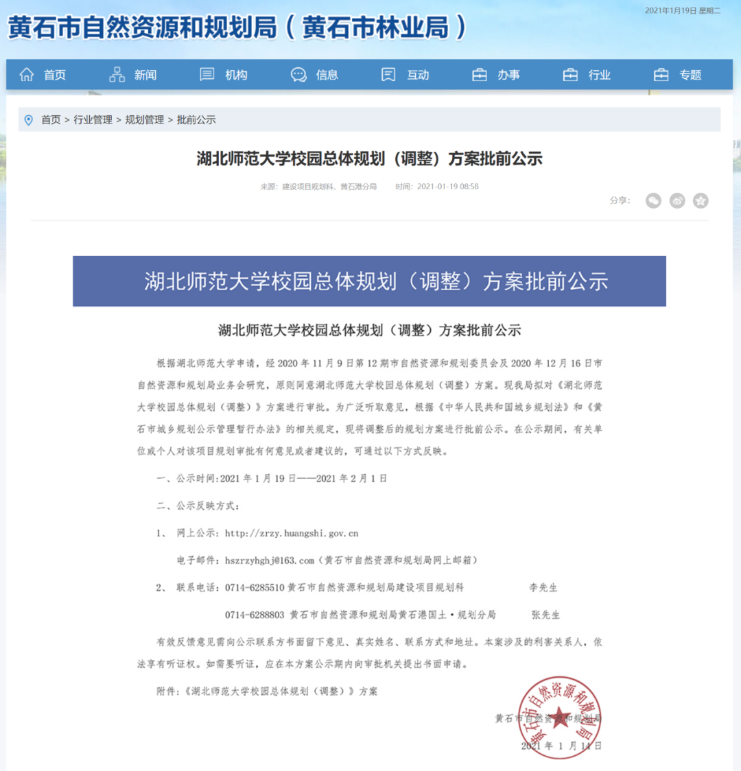 发布了 湖北师范大学校园总体规划(调整) 方案批前公示