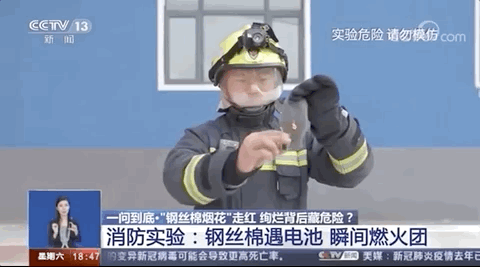 消防员表示,钢丝棉在使用中很容易灼伤皮肤,也会引燃周边的可燃物,尤其现在天气干燥有风,安全隐患较大。实验表明,钢丝棉接触电池也会被点燃。