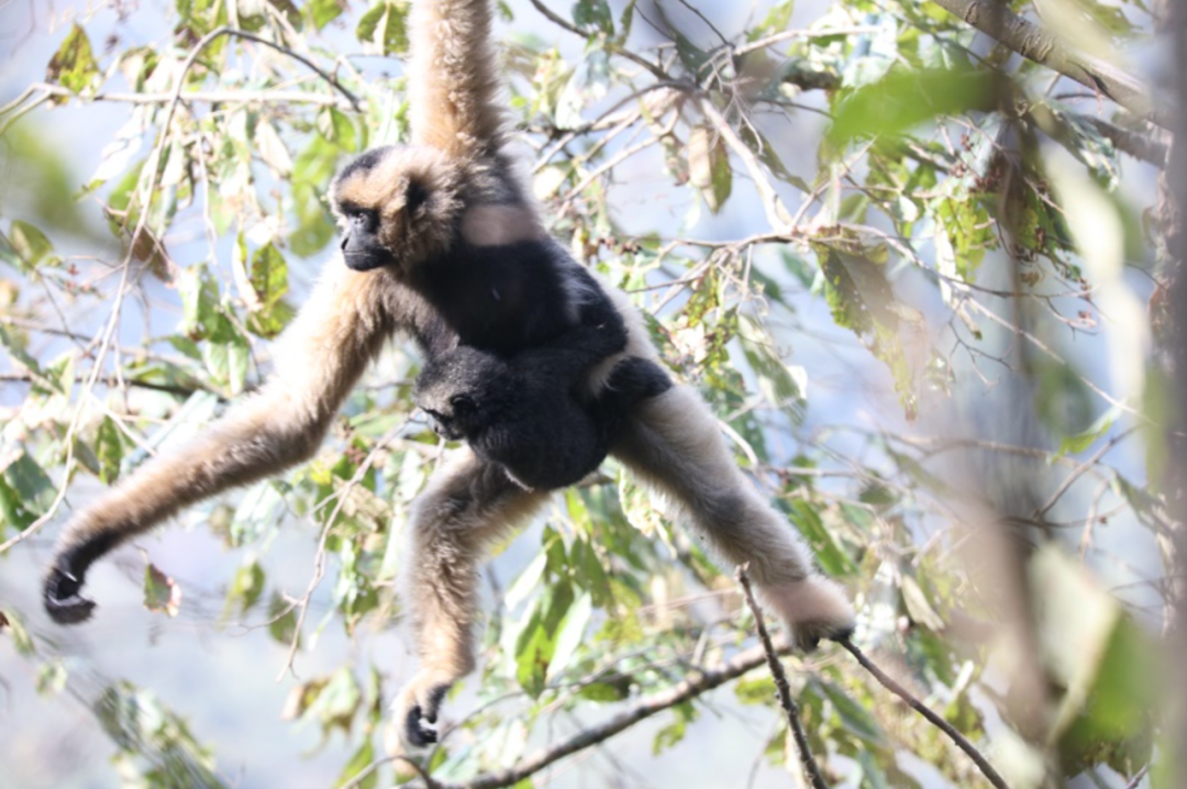 近日,云南省永德县大雪山国家级自然保护区监测到3群10余只西黑冠长臂猿滇西亚种。