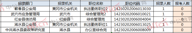 三,截止2月24下午16:00湖北黄冈省考暂无人报考岗位5个