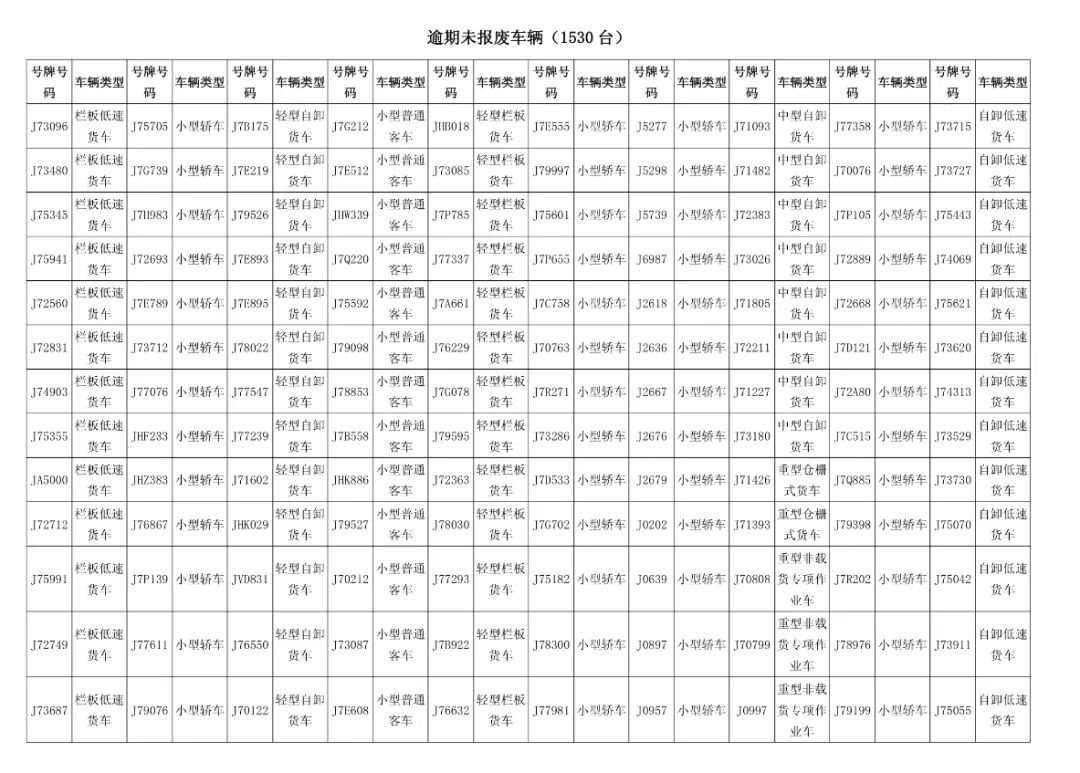 为规范车辆管理,有效制止车辆带病上路,预防减少道路交通事故发生。根据《机动车登记规定》第三十一条之规定,现将我县达到报废标准机动车予以公告。请相关单位和个人积极主动对达报废标准的机动车予以报废、 注销。