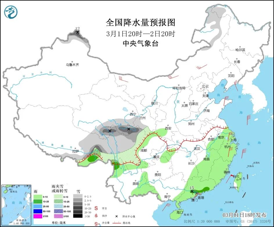 中央气象台预计,2日,冷空气继续影响我国,吉林东部、黄淮南部、江淮大部、江南东部、华南西部等地的部分地区降温8~10℃,青藏高原东部等地有小到中雪或雨夹雪。