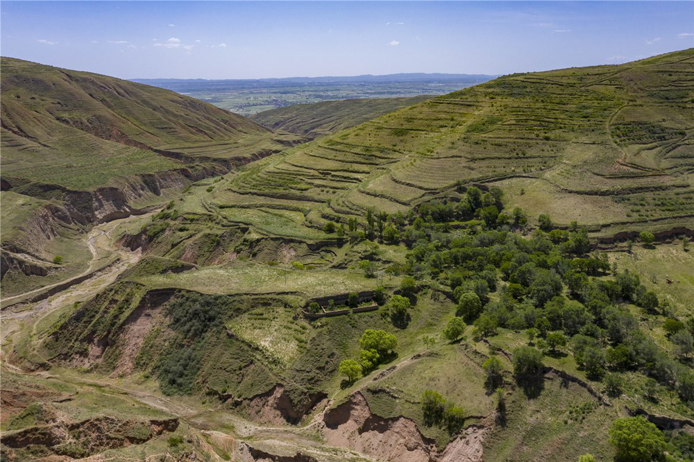 热播剧《山海情》里提到的宁夏西海固,近年来通过实施退耕还林、荒山造林、生态移民迁出区生态修复等,生态环境明显改善。这是宁夏固原市原州区彭堡镇凤凰蛋村,昔日的黄土高原已是满眼绿色。(无人机照片,2020年6月3日)新华社记者 王鹏 摄
