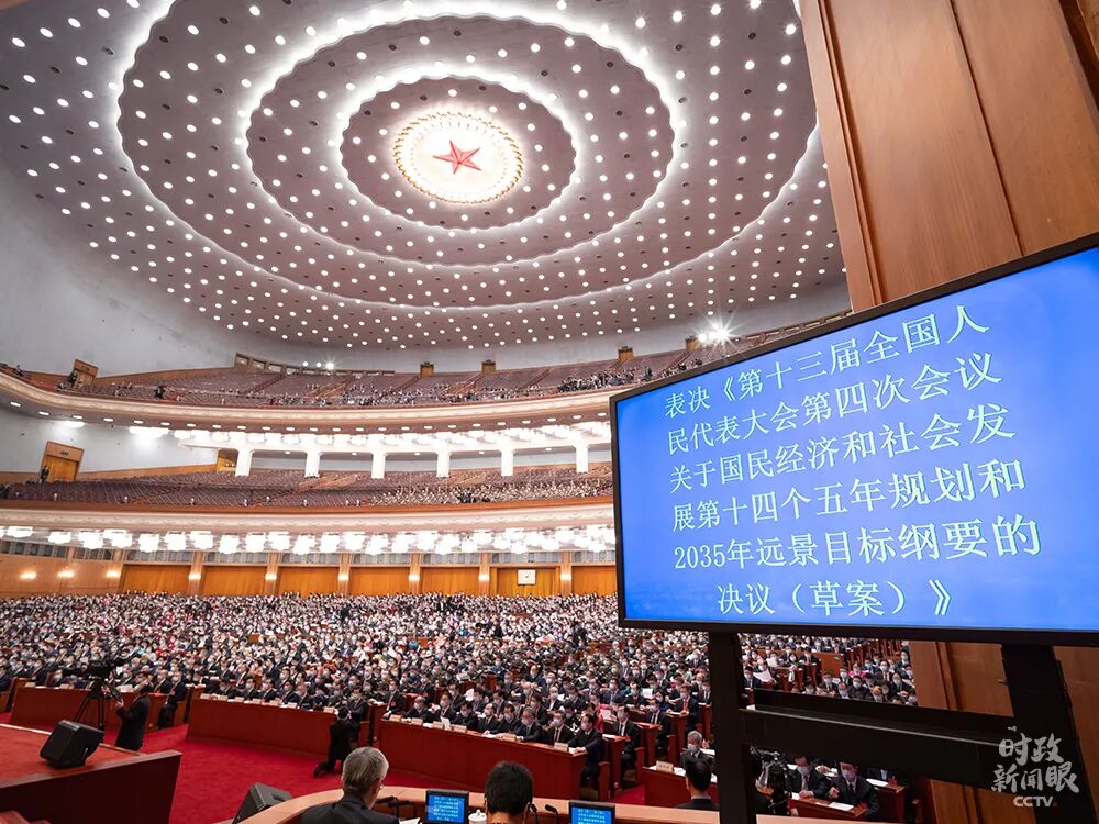 △十三届全国人大四次会议表决通过关于“十四五”规划纲要的决议。(总台央视记者王哈男拍摄)
