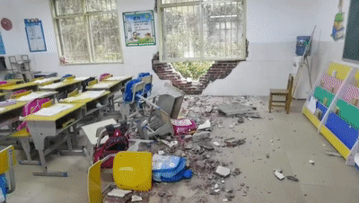岩石崩塌砸穿学校教室