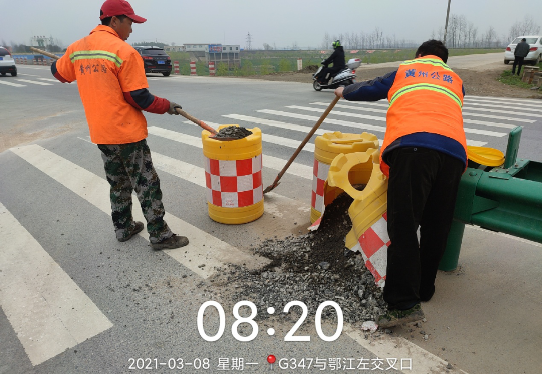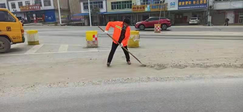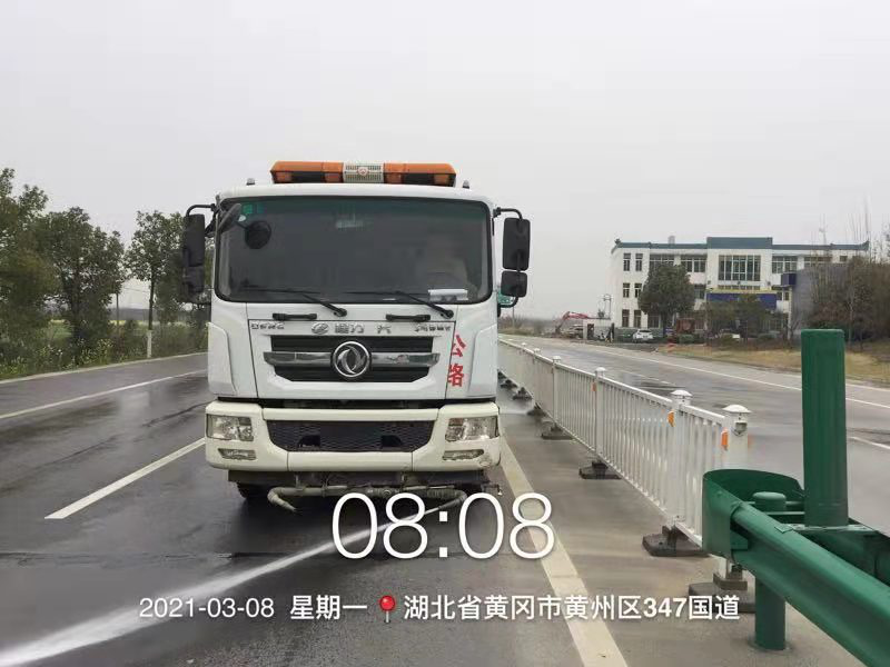 团风县公路管理局每天出动40余名养护职工,3台洒水车,4台养护作业车,洒水治理扬尘80公里;清理边沟500米,清理路面抛洒1500米,铲除路肩杂草和堆积物800米,人工清理隔离带2000米,清理桥头路肩土堆200米。