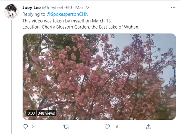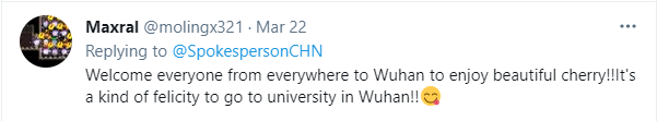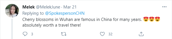 (“Cherry blossoms all around #Wuhan”)