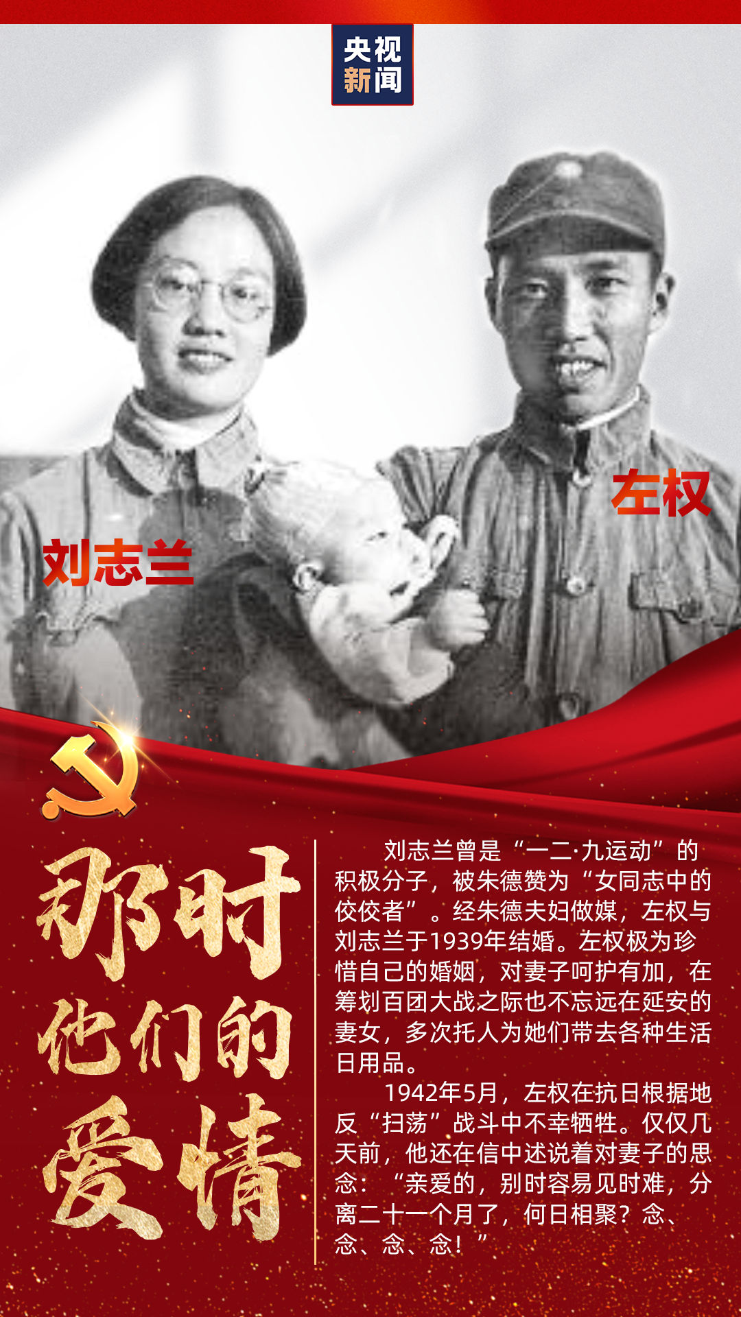 爱情是什么?万千个人也许会有万千种答案。中国共产党走过百年历程,许多先辈也曾在金子般的年华里遇到过最美好的爱情。在烽火硝烟、生死考验面前,他们如何抉择?又如何诠释“忠诚”?央视新闻推出专栏《那时他们的爱情》,记录一代又一代中共党员爱的誓言。