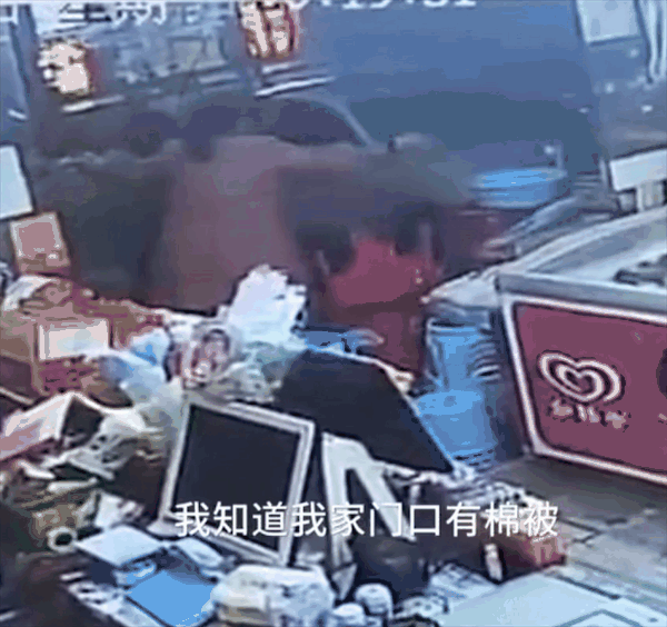 ‘不要动’‘小心掉下来’我马上把超市门口的两床棉被扔出去