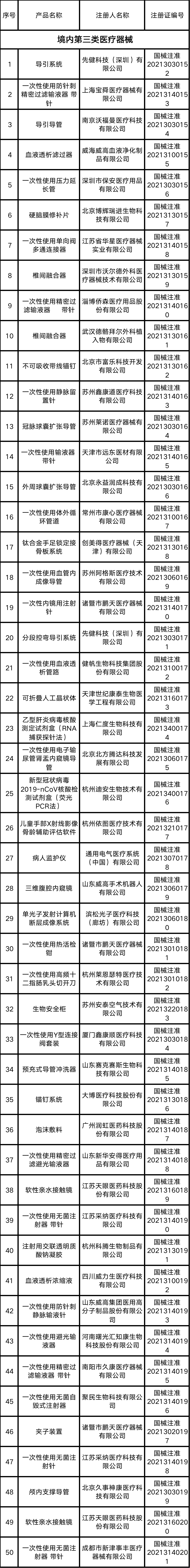 4月25日,国家药品监督管理局发布了关于批准注册121个医疗器械产品的公告。公告指出,2021年3月,国家药监局共批准注册医疗器械产品121个。其中,境内第三类医疗器械产品77个,进口第三类医疗器械产品18个,进口第二类医疗器械产品24个,港澳台医疗器械产品2个。