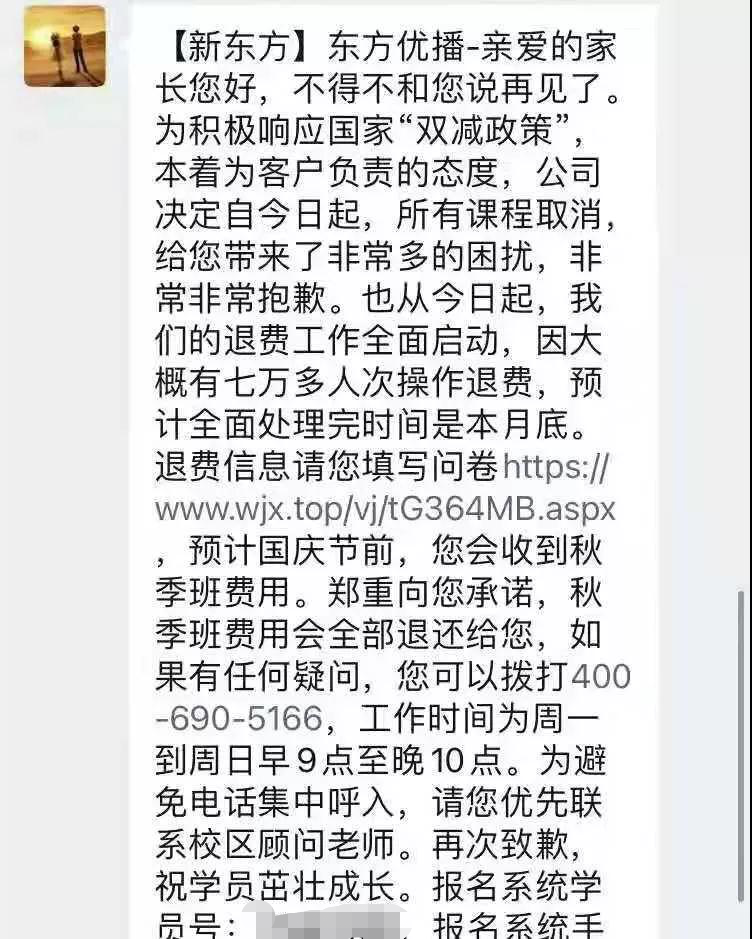 记者向新东方教育科技集团求证,对方回应,“依照国家‘双减’政策要求,新东方在线积极响应并持续调整相关业务,确保公司合规发展。东方优播已决定关闭K12阶段学科类培训业务。目前,公司账面资金较为充裕,我们将依法依规做好学员退费和员工伙伴的妥善安置及补偿。”
