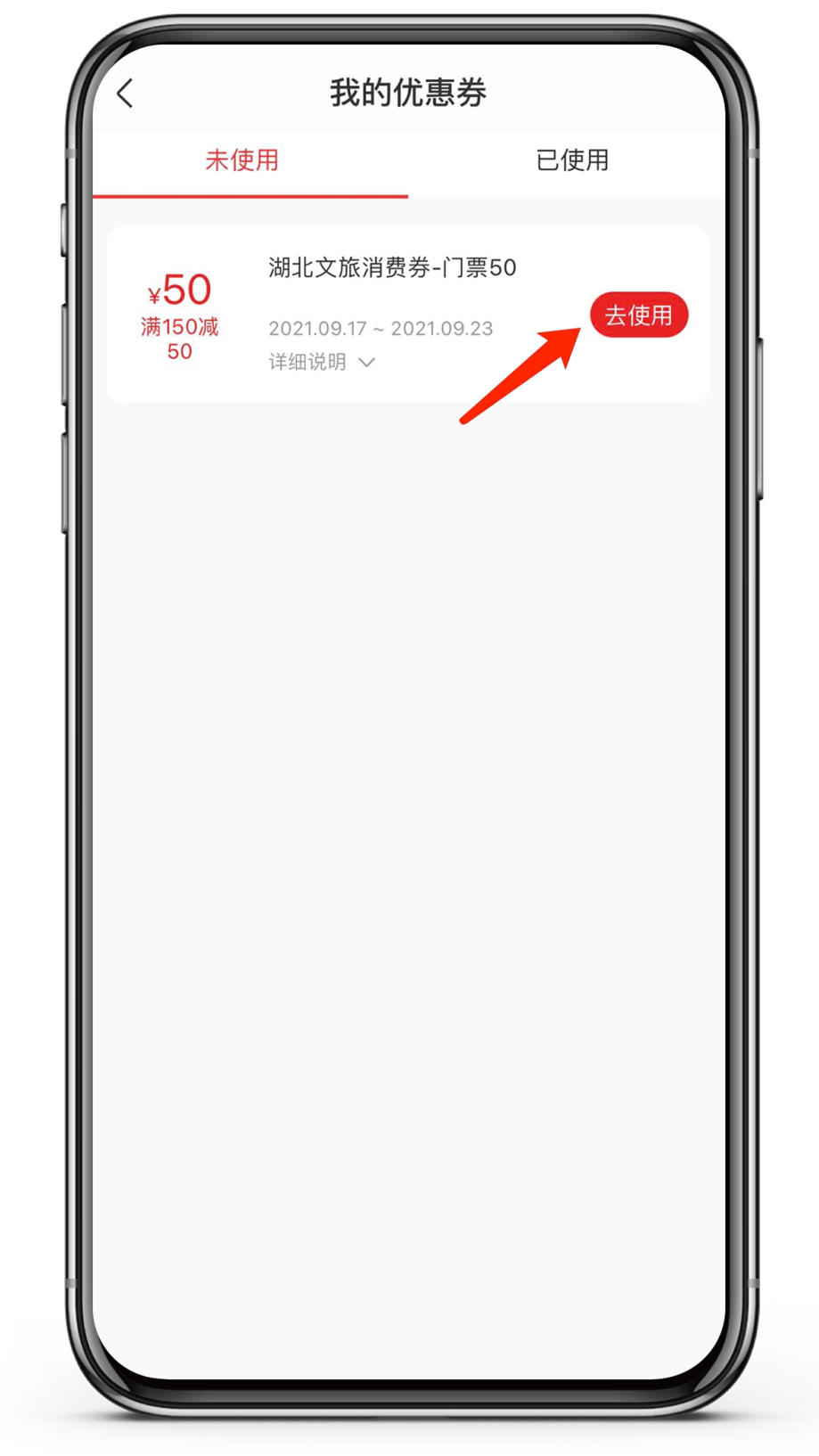 ③点击消费券参与抢券,抢到的消费券,可在游湖北“我的优惠券”查看详情。