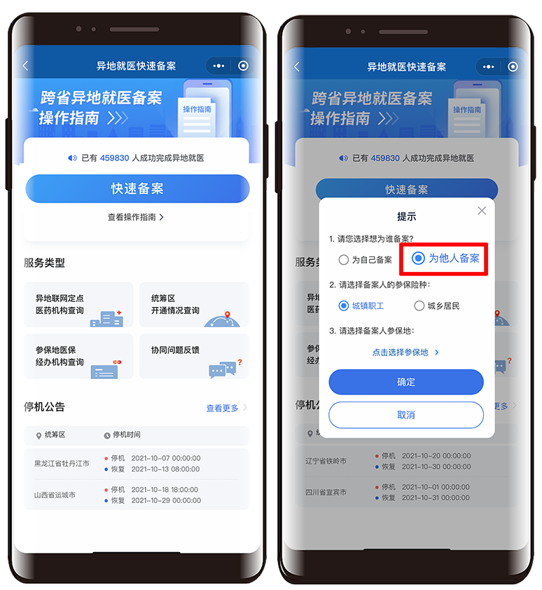 (参保地不在上述地区的朋友,可以点击异地就医经办机构查询,到附近的经办机构,线下备案!)